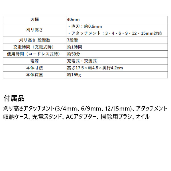 ・1回のフル充電(約1時間)で、連続約50分のコードレス使用可能。